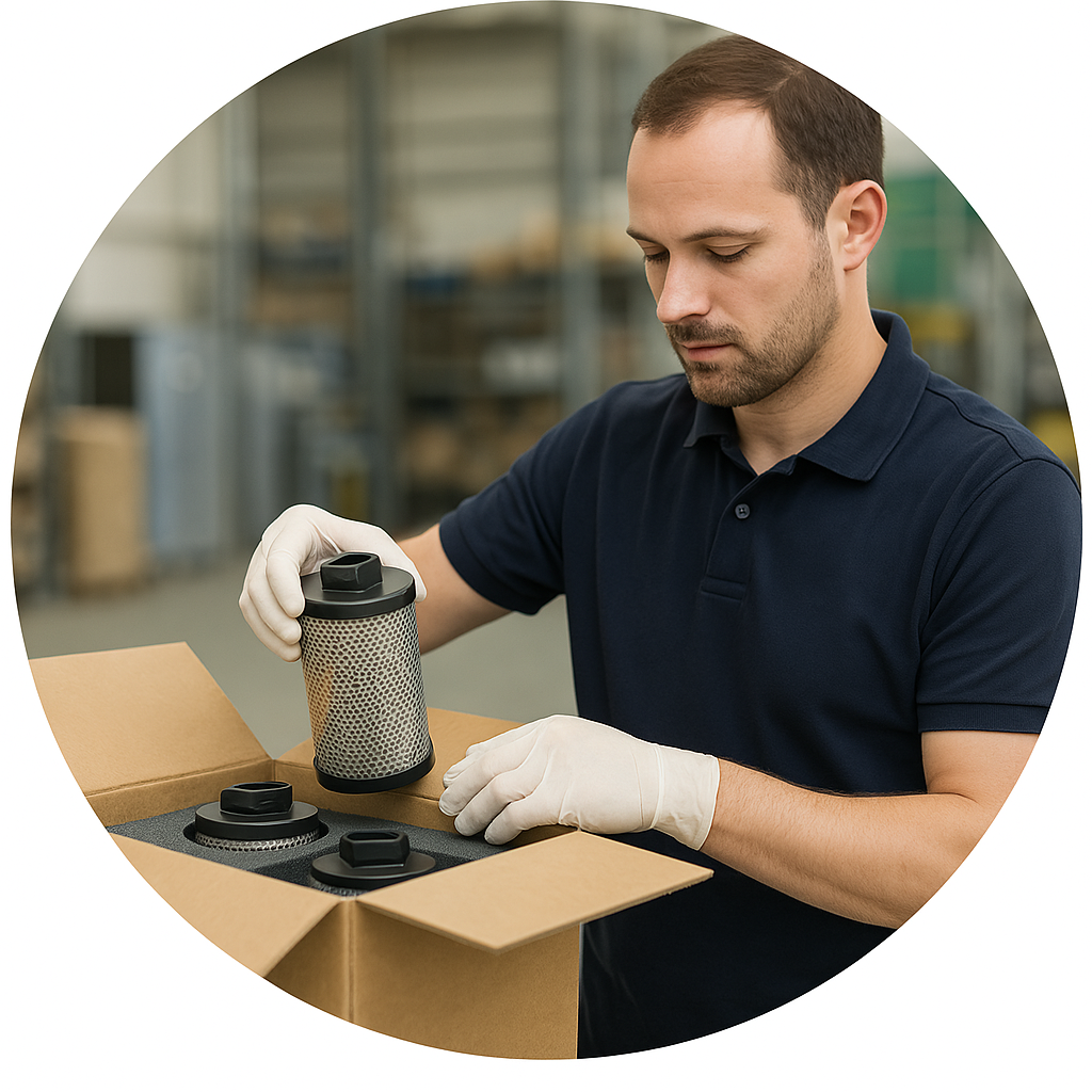 Wir verwenden industrielle Premium-Verpackungen für den sicheren Versand Ihrer Filterlösungen.